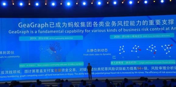 大规模图计算系统 GeaGraph由蚂蚁集团联合清华大学共同研发,是基于图模型的新型数据分析系统。系统解决了图数据分析面临的大数据量、高吞吐率和低延迟等重大挑战,实现了对复杂金融场景下海量交易数据的高效分析,能够快速识别和防范日益隐蔽多样的欺诈、洗钱等恶意金融行为。GeaGraph在图存储、离线图计算、图处理等技术上有重大创新。