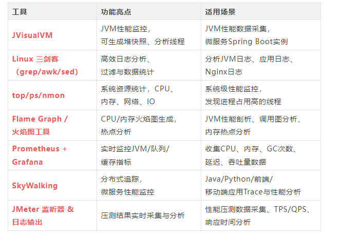 • 根据监控数据调整堆大小、年轻代比例和 GC 策略• 重点关注 Full GC 停顿时间对业务延迟的影响JVM 配置不仅是“工程师调优”,也是性能测试的一部分。通过压测数据验证配置效果,才能真正确保系统在高并发场景下稳定运行。五、常见调优策略(性能测试视角)