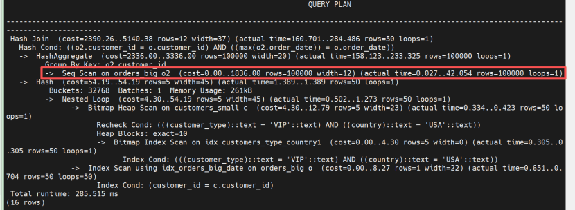 总结:此规则将为外层每一行执行一次子查询的模式,转变为先执行子查询一次,再与外表整体连接的模式,并非总是有效:如果子查询本身非常庞大且无法有效缩减(例如需要全表扫描聚合),上拉后强制进行 Hash Join 或 Nested Loop 的成本,可能会高于原执行计划中高效的多次索引扫描(SubPlan),反而导致性能下降的典型案例,有兴趣的话,可以把上面的max改成min对比,会发现enable_sublink_pullup_enhanced开启后性能反而会劣化,不能和disable_pullup_expr_sublink一起使用。