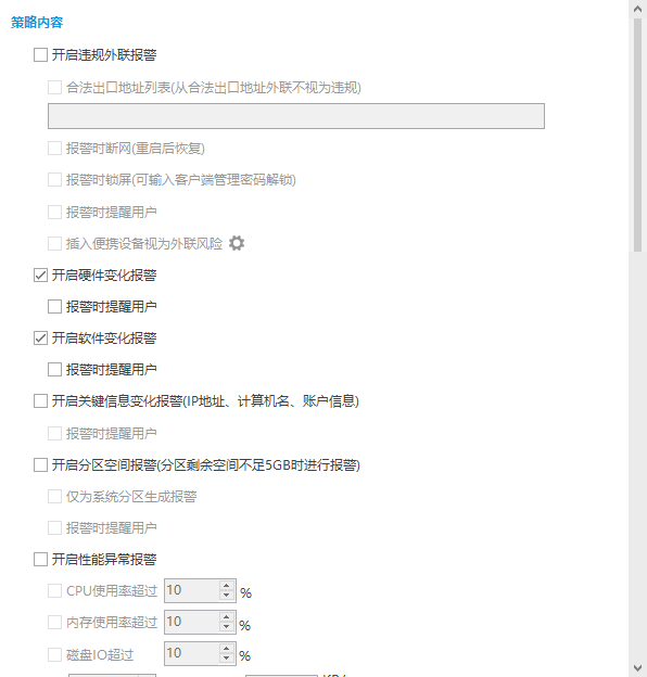 但用了软硬件变化报警功能后,这种情况再也没发生过 —— 只要终端的硬件(比如新增硬盘、更换内存)或软件(比如卸载关键程序、安装违规软件)发生变更,软件会立即触发报警,并告知管理员具体变更内容和涉及的终端。