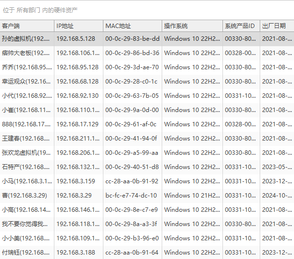 硬件资产统计功能,能自动采集每台终端的硬件配置信息,像 CPU 型号、内存大小、硬盘容量、显卡型号等,都能精准统计并分类整理。要是需要给性能不足的电脑升级硬件,或者盘点闲置设备,直接查看硬件资产报表就能快速规划,再也不用抱着清单去机房逐个核对。