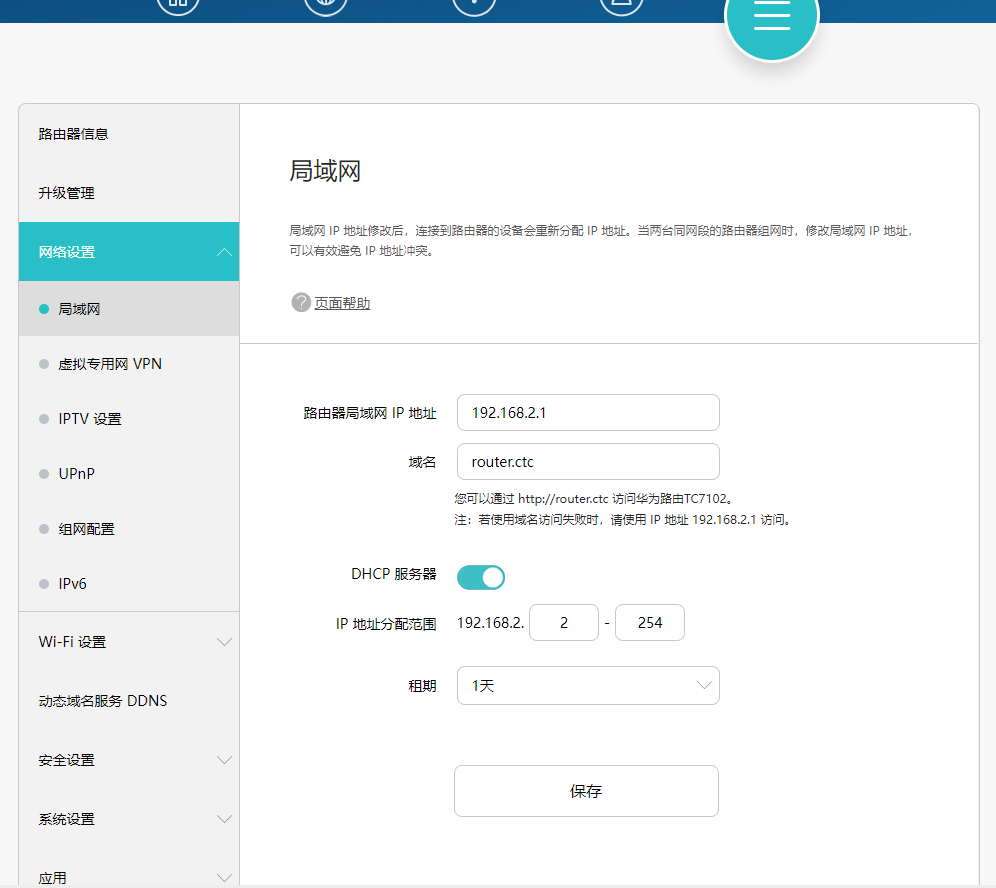需要关注的是IPTV,和DHCP功能,为了避免与其他路由器网段有冲突,可能需要改网段,或者关闭,具体操作和上面的差不多。