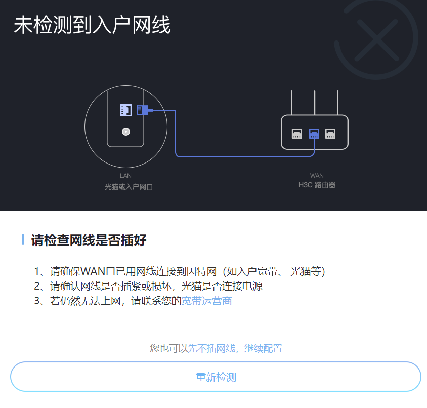 浏览器打开192.168.2.1,选择先不插网线,继续配置。新路由器可能不需要填名称和密码就可以登录。