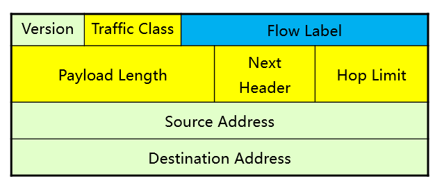 和IPv4头部相比,IPv6头部去除了IHL、identifiers、Flags、Fragment Offset、Header Checksum、 Options、Padding域,只增了流标签域,因此IPv6报文头的处理较IPv4大大简化,提高了处理效率。