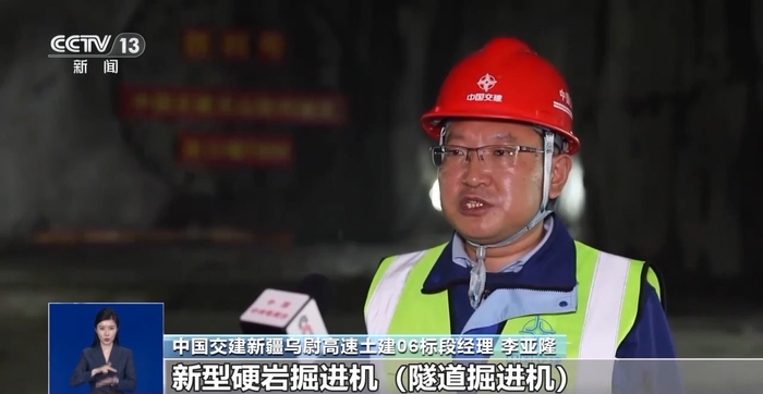 中国交建新疆乌尉高速土建06标段经理 李亚隆:这是我国自主研制的新型隧道掘进机,它有两种掘进、三种支护模式,整合了多项功能,可以根据软硬不同的地层随时调整掘进和支护模式。掘进中能直接加固好隧道内壁。比人工钻爆快5倍。