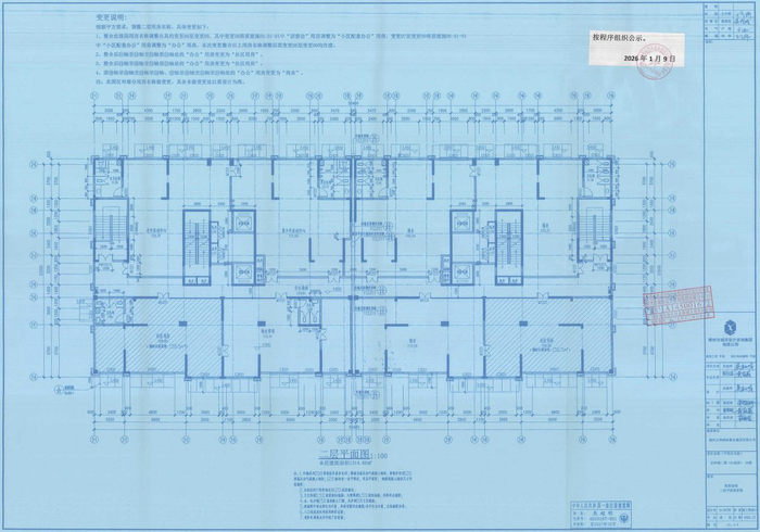 将正和城二期(D1地块)2#楼二层平面图原2-43 轴至 2-56 轴交 2-A 轴至 2-G 轴处的“小区配套办公”用房(建筑面积150.5平方米),变更为“社区用房”。