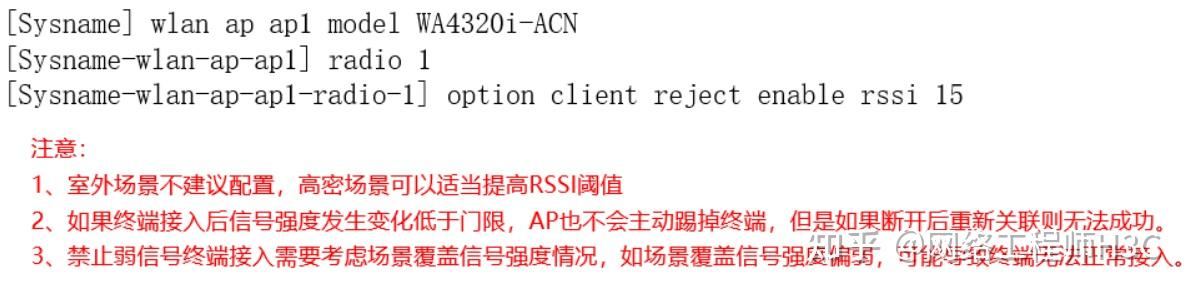 禁止低速率一般在2.4G上配置,5G不配置;高密场景5G可以考虑配置。室外场景2.4G和5G建议都不配置大法八(强烈推荐):禁止弱信号接入客户端