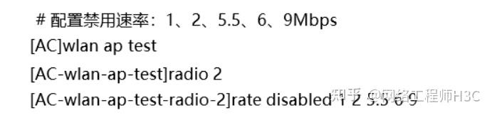 无线WLAN网络中不是使用固定的速率发送所有的报文,而是使用一个速率集进行报文发送(例如11g支持1、2、5.5、11、6、9、12、18、24、36、48、54Mbps) ,实际无线终端或者AP在发送报文 的时候会动态的在这些速率中选择一个速率进行发送。通常提到的11 g可以达到速率主要指所有报文都采用54M速率进行发送的情况,而且是指的一个空口信道的能力。而实际上大量的广播报文和无线的管理报文都使用最低速率1Mbps进行发送,所以会消耗一定得空口资源。 在无线网络中信号传输的距离不是 问题的情况下,可以将1、2、6和9Mbps速率禁用,这样整体上减少广播报文和管理报文对空口资源的占用。