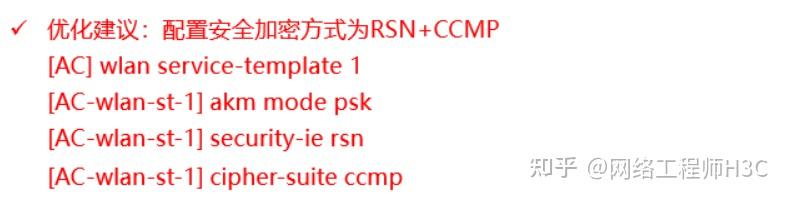 在WLAN网络中,空口设置明文不加密,可以减少因加密带来的密钥协商时间开销,获取最大的无线空口性能。如果因安全因素考虑必须设置加密,建议加密方式设置为RSN+CCMP,不推荐使用TKIP或者WEP加密方式,这两种加密方式只能协商到54Mbps无法发挥无线网络的高带宽性能,同时加密算法比较容易破解,存在安全风险。
