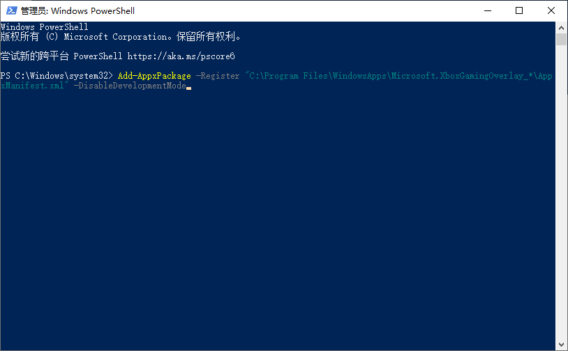 第三步:重新注册 Xbox Game Bar 组件