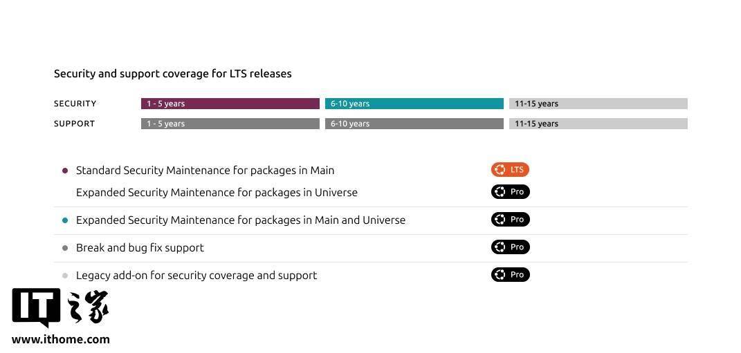 IT之家 11 月 16 日消息,Ubuntu 发行商 Canonical 于当地时间周四发布公告,宣布将通过 Ubuntu Pro 的 Legacy 附加组件,将 Ubuntu LTS 版本的支持周期延长至 15 年。