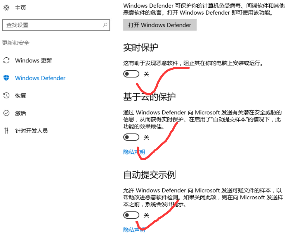 安装系统的过程直接跳过,装好后关闭防火墙、关闭Windows Defender;
