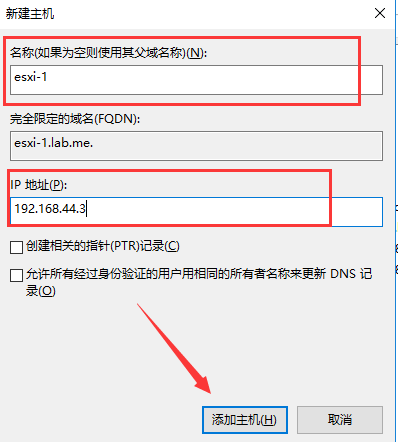 前面提到,vSphere整个结构都是基于网络实现,逐渐拼凑的。所以,除非你能保证vSphere全流程都在ipv6下跑,否则某些组件就会出问题。这里把ESXI的主题名解析记录添加一下;