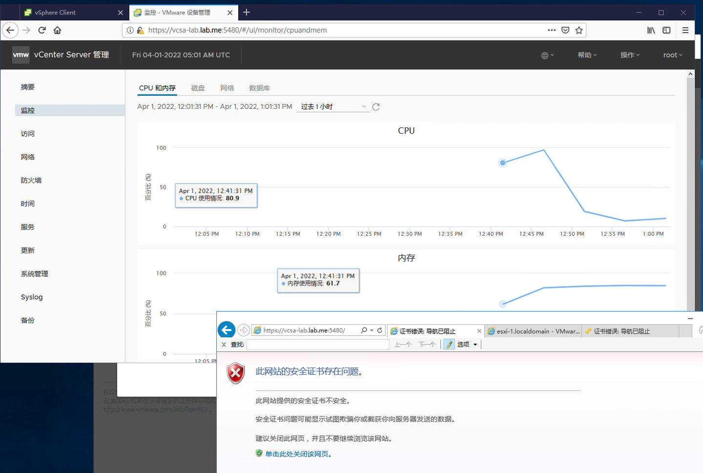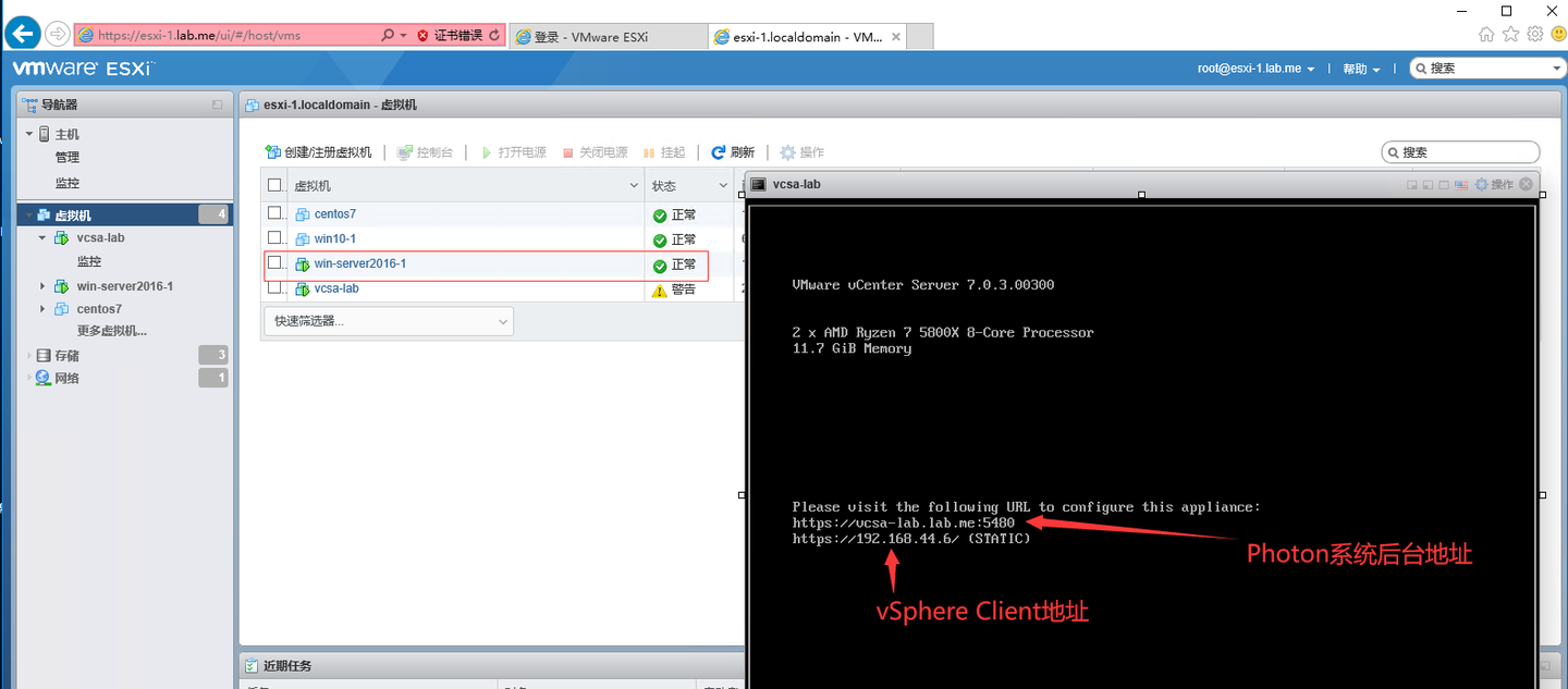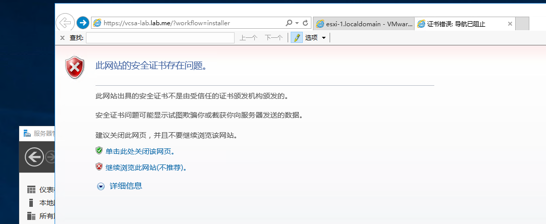 能返回正确地址后,就可以在浏览器里通过主机名的网址访问了 http://esxi-1.lab.me
