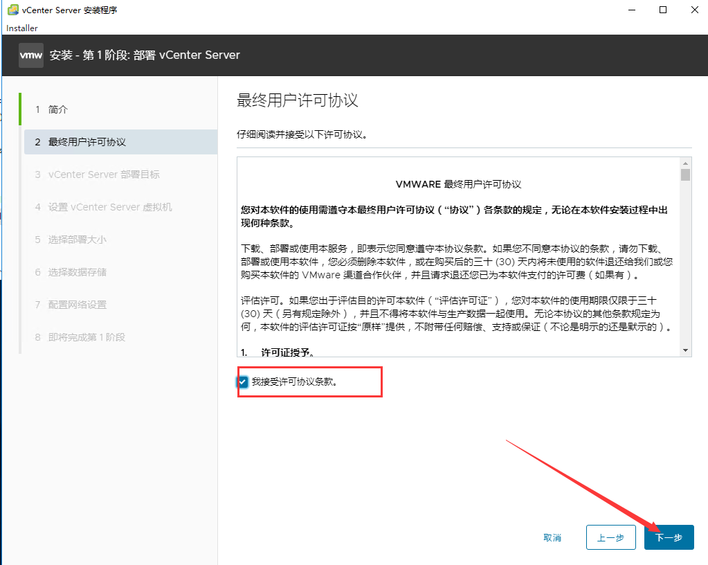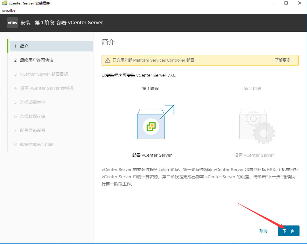 界面和ESXI完全是一个模子,然后继续第二阶段的安装,在photon系统上部署vSphere Client管理平台;