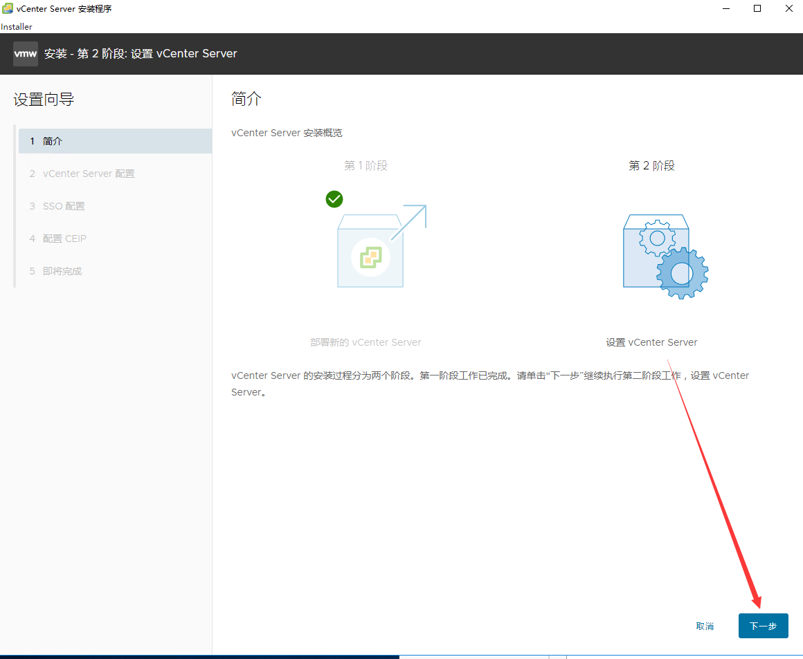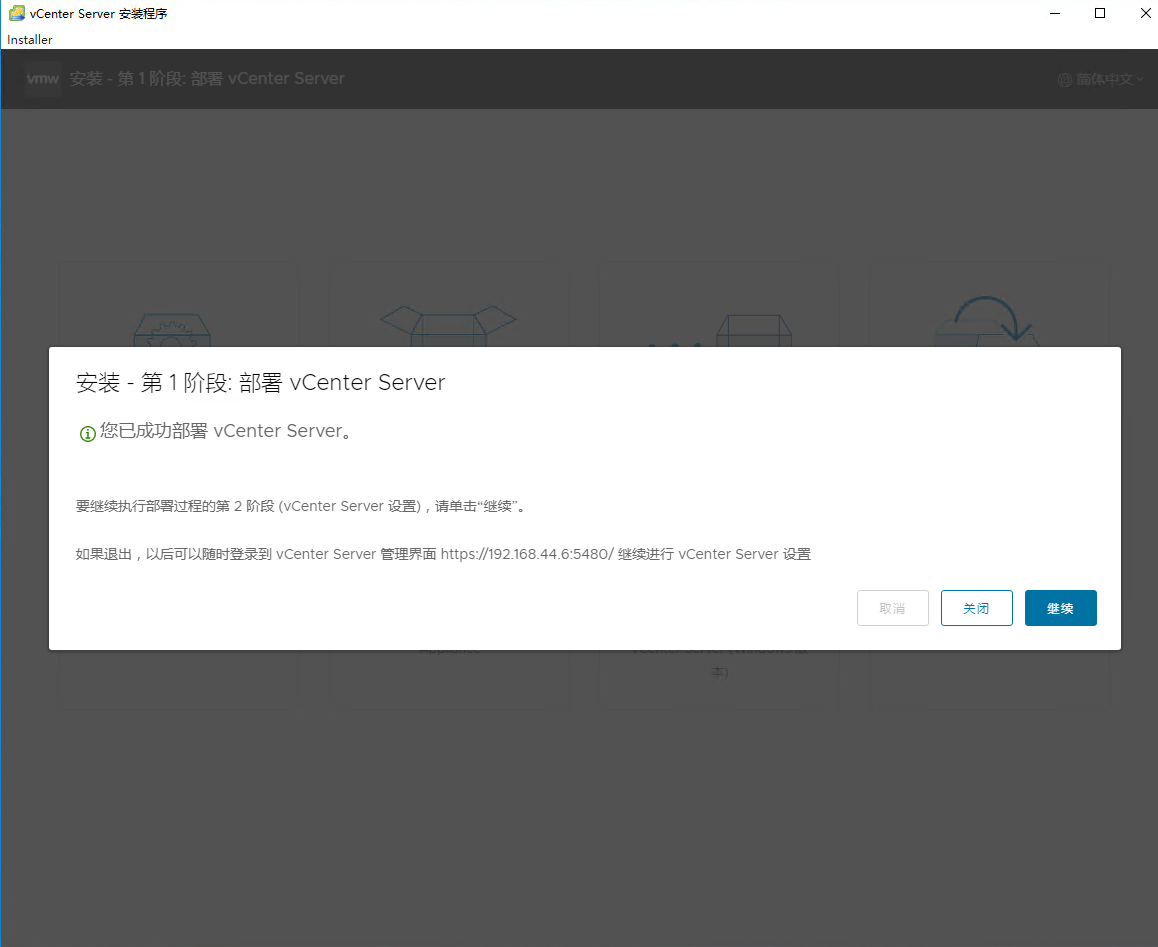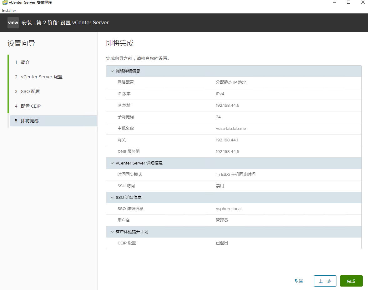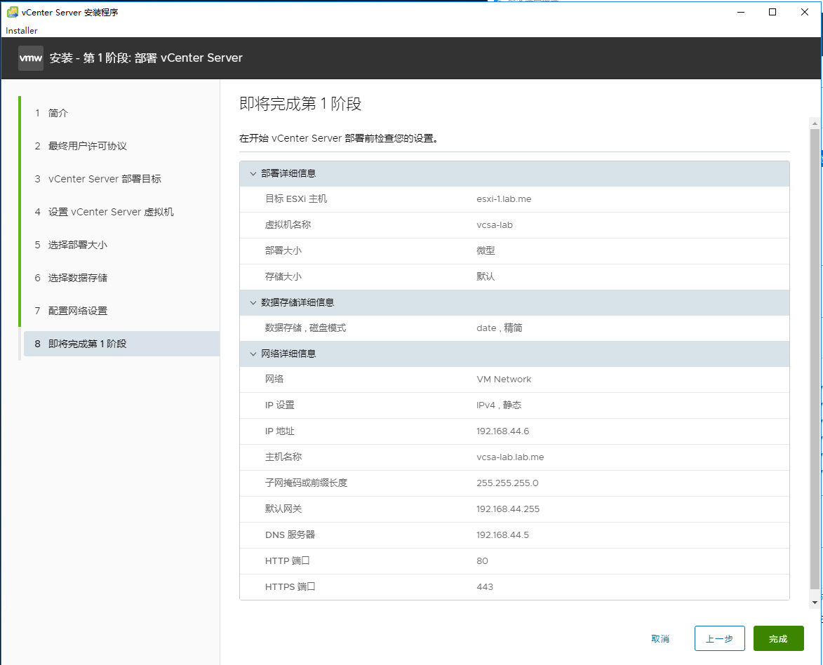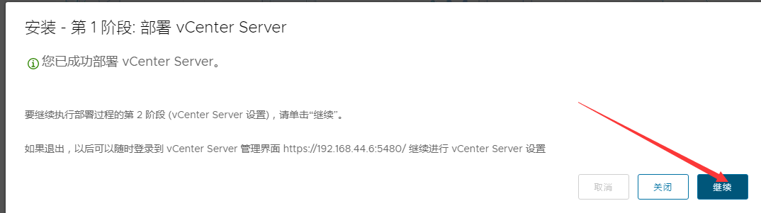 第1阶段vCenter Server部署完成(到这里基于Photon系统的vCenter Server就安装完成了);