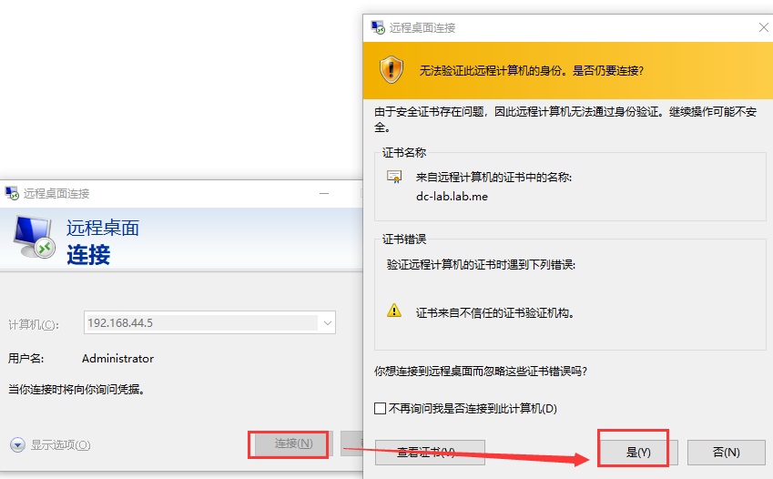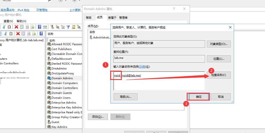 注意:身份验证需要使用域管理员的账号密码,也就是Windows域控服务器的管理员账号密码,或者用自己创建并分配好管理员的用户,例如我刚才创建的noid