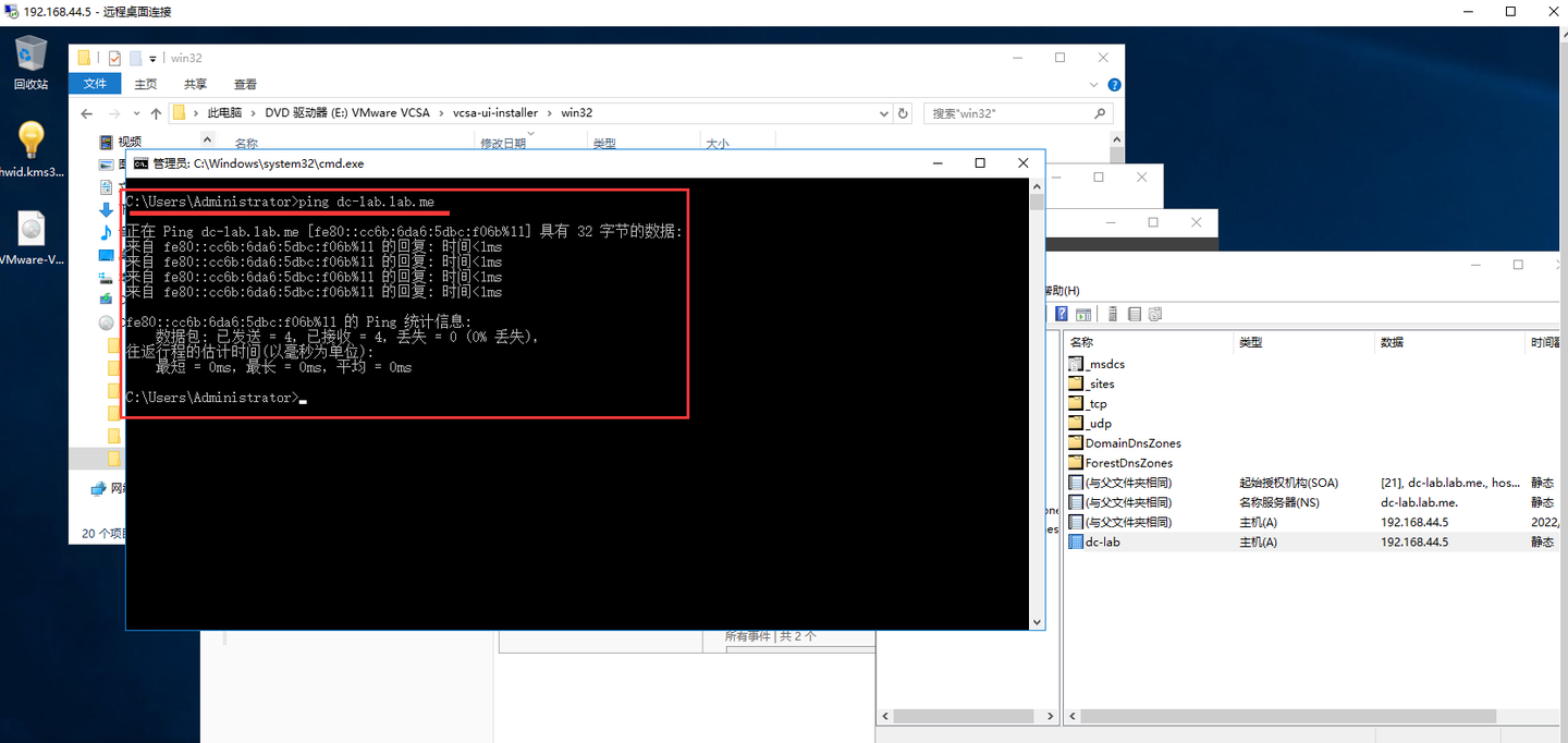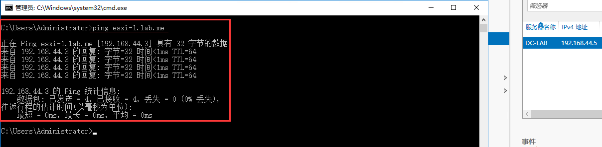 重启此win server2016虚拟机,重启后再次测试:ping http://dc-lab.lab.me注册表强制ipv4成功;