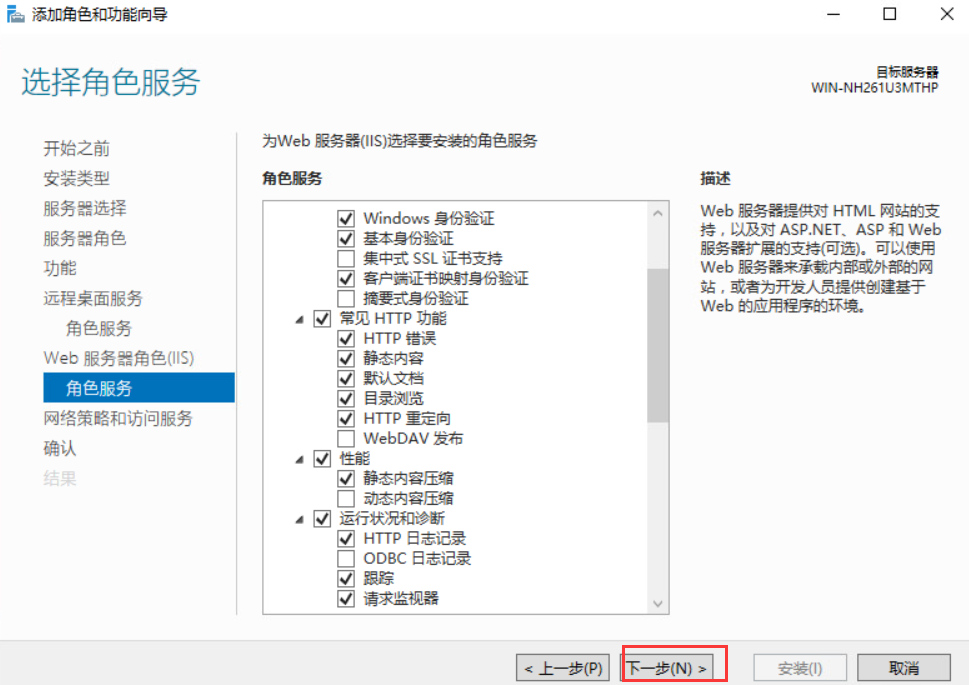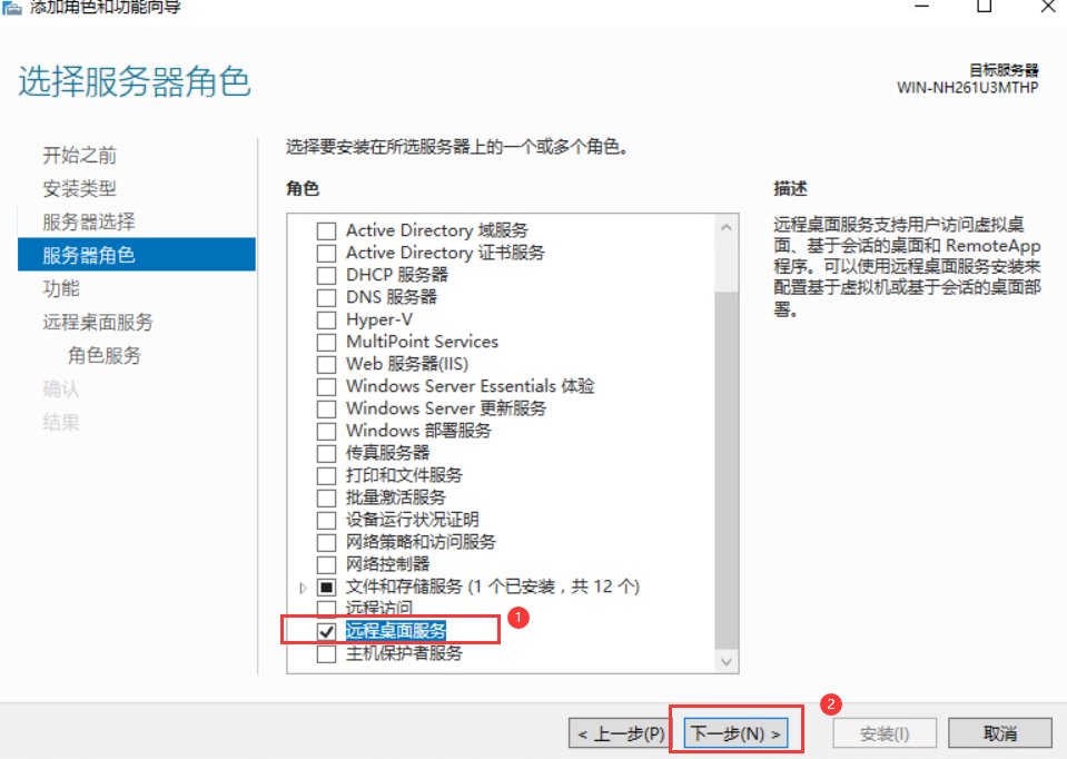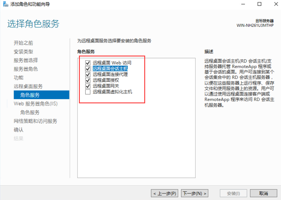在“选择角色服务”对话框中,选择“远程访问”复选框;