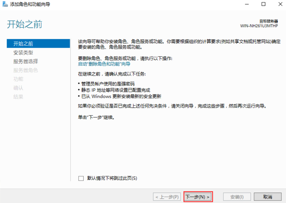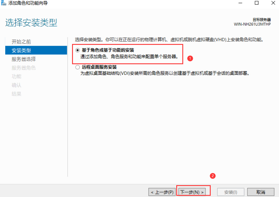 在“选择安装类型”窗口,选择“基于角色和功能的安装”;