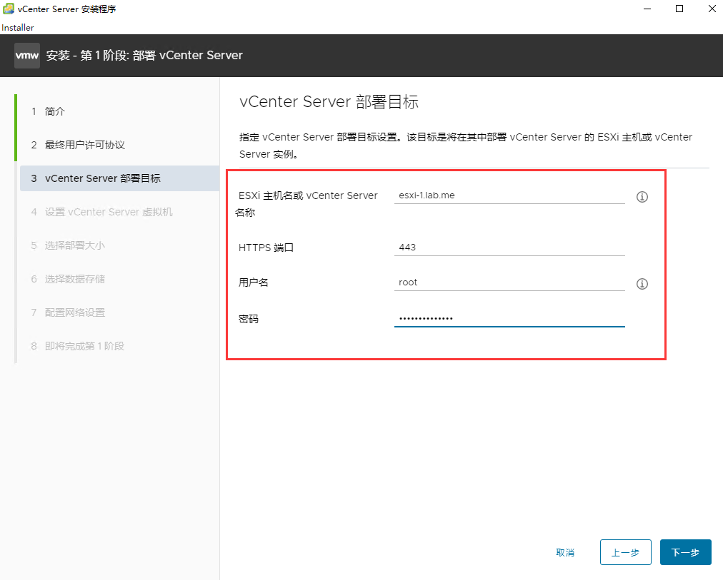 如果现在你脑袋有点晕,那么这里直接写你ESXI主机的ip地址。然后继续安装就可以,没有任何影响,虽然不太完美,但细节以后搞也不影响;