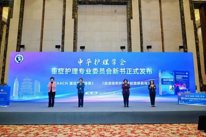 本次会议上,中华护理学会重症护理专业委员会正式发布了《AACN重症护理精要》与《血液吸附护理技能图解教程》两部新书。发布仪式由主编孙红主委致辞开场,她以热情洋溢的讲话对新书进行了详细介绍。随后,孙红主委、吴晓英副主委、关欣副主委及王欣然主编共同为新书揭幕,并现场抽取了四位幸运学员赠书,将现场气氛推向高潮。这两部专业工具书的推出,必将推动重症专科护理事业迈向更加专业化、规范化的新阶段。
