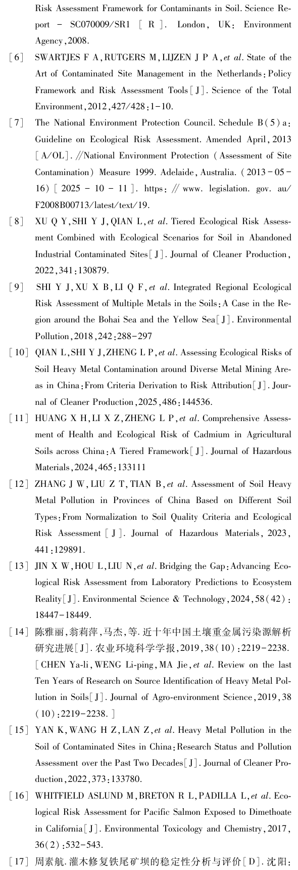 污染场地对周边土壤生态系统和人群健康造成了危害[1-2]。开展风险评估是场地土壤污染风险管控、修复及后续开发再利用的重要依据[3]。目前我国的污染场地风险评估对象主要聚焦于健康风险,针对生态保护目标的风险评估体系较少[3],污染场地土壤生态风险评估框架和方法的形成面临着多重限制[2-3]。