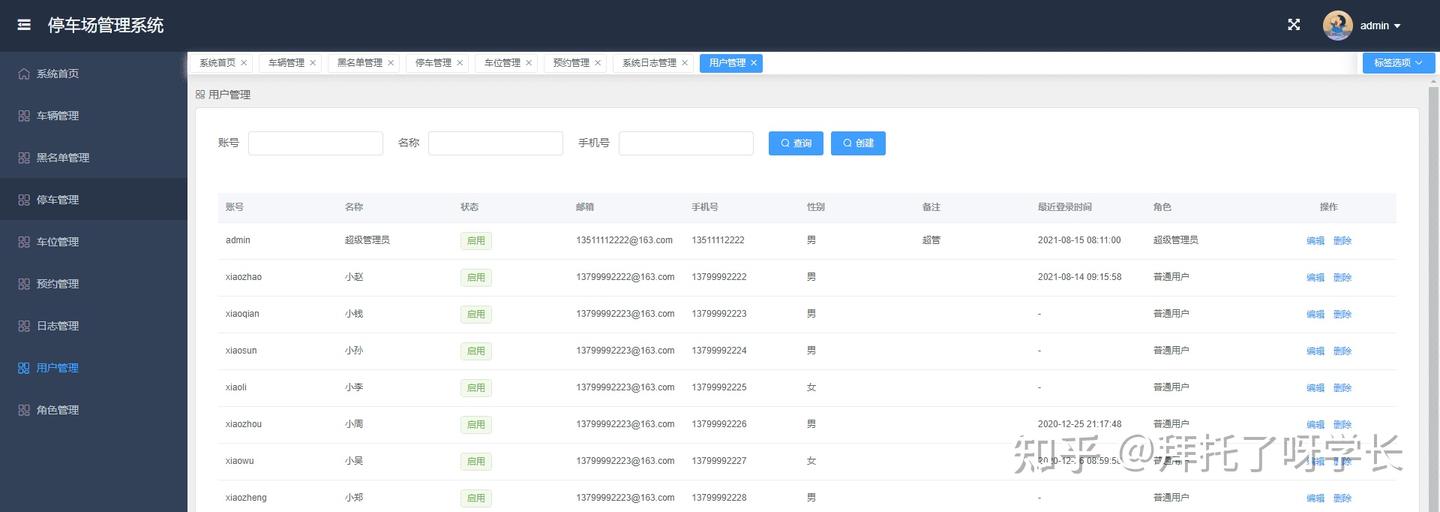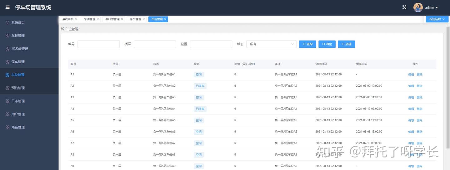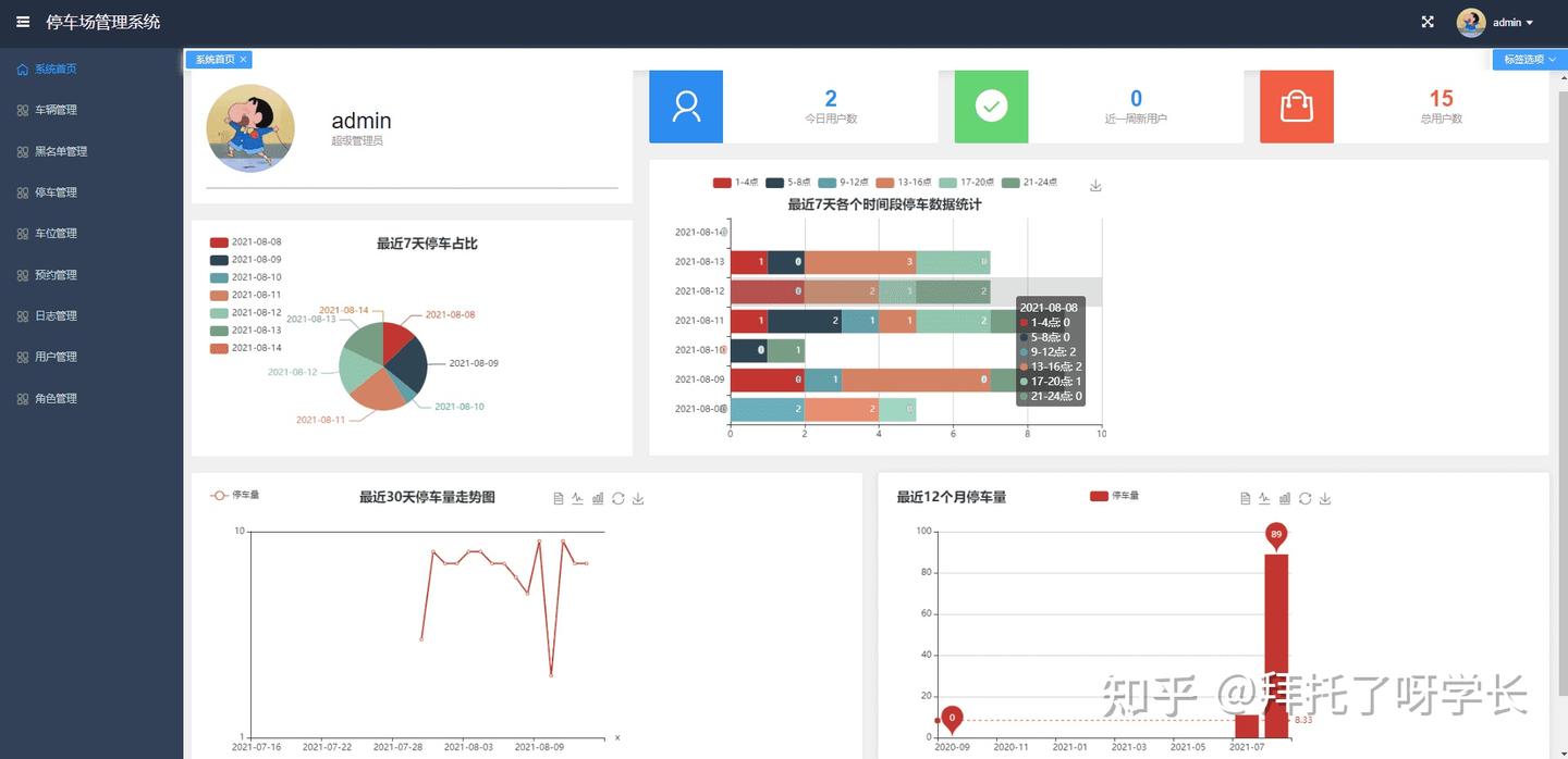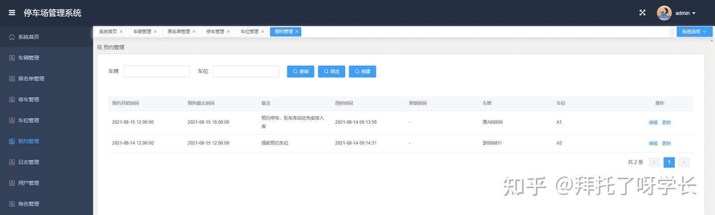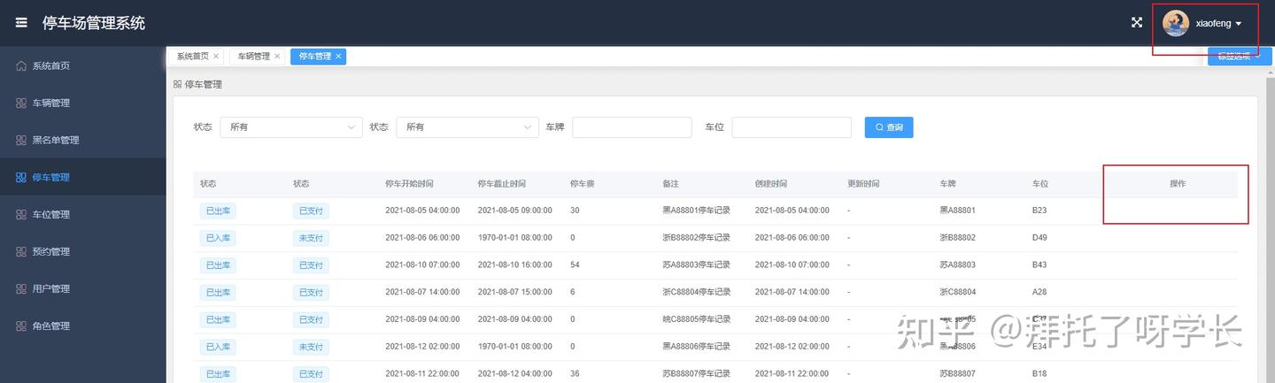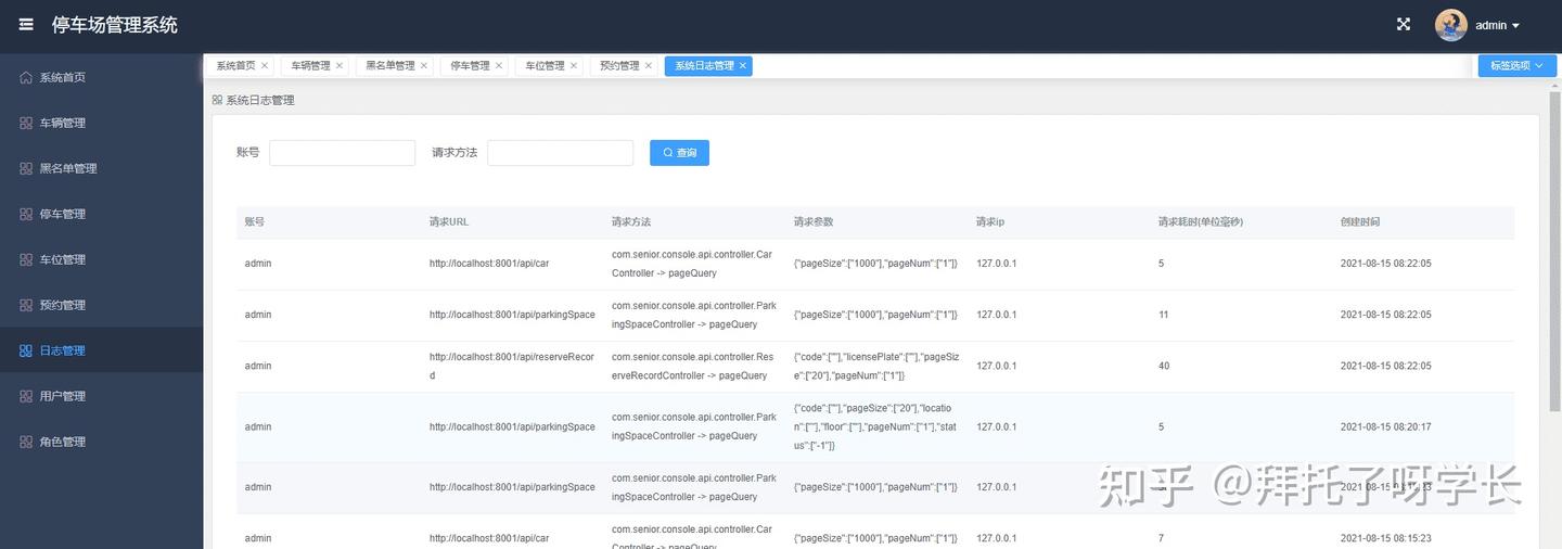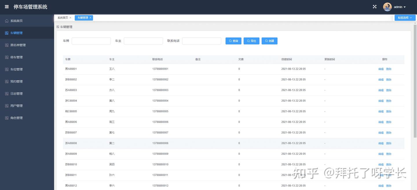 本期项目是停车场管理系统,主要包括数据监控大盘、车辆管理、黑名单管理、停车管理、车位管理、预约管理、日志管理、用户管理、角色管理。尽可能的把停车场功能做全,然后以企业级的开发标准来完成整个前后端代码,无论是用来作为毕业设计还是拿来学习,相信对初学者都会有很大帮助。