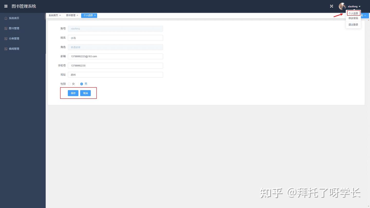 这里权限设计的非常灵活,细粒度到按钮级别,比如新增、删除、修改、查询、借阅动作,普通用户可能就只有查询权限,管理员则拥有新增、删除、修改的权限。普通用户即使通过接口直接访问后端的修改或者删除接口,后端也会返回授权失败错误,因为后端每个需要权限的接口都打了权限标识,只有拥有资源权限用户才能访问。