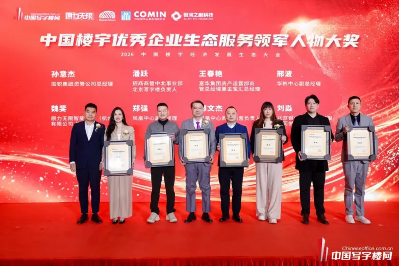 “中国楼宇优秀企业生态服务领军人物”大奖由中国写字楼网创始人冯鑫颁奖,国锐集团资管公司总经理孙意杰、招商商管中北事业部北京写字楼负责人潘跃、富华集团资产运营部商管总经理兼金宝汇总经理王春艳、华彬中心副总经理、原力无限科技控股(浙江)有限公司副总裁魏斐、凤凰中心副总经理郑强、凤凰中心商务运营负责人郭文杰、北京银河之眼科技有限公司创始人刘淼等多位行业专家、精英获奖,他们均深耕行业多年,以专业实力推动商办地产行业高质量发展。