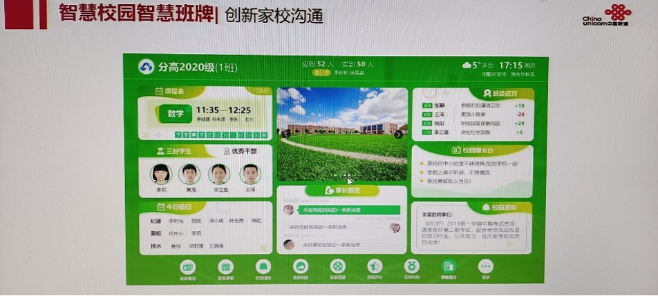 湖南联通智慧校园“云班牌”应用展示界面