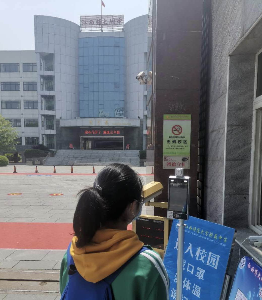 校园人员多,流通大,疫情实时监控需求突显。中国联通为江西师大附中打造的“5G+AI红外测温+口罩识别”智慧门禁系统不仅能有效进行疫情防控测温,即使佩戴口罩和护目镜,也能在短短一秒内准确识别人员身份,高峰期也不会排队拥挤。
