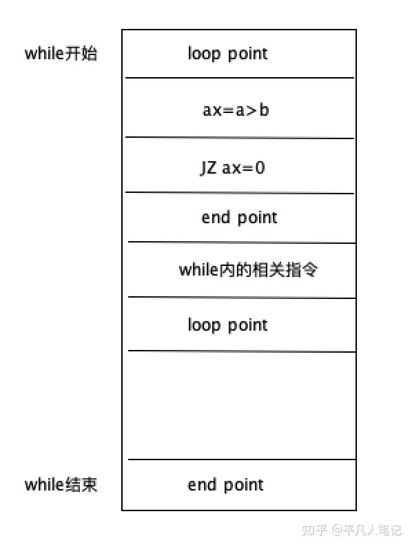循环体代码执行完了 要循环 回到开始的位置 有一个JMP loop point