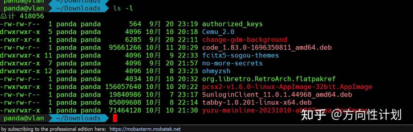 文件的硬链接总数;文件属主的用户名;文件属组的组名;文件的大小(以字节为单位);文件的上次修改时间;文件名或目录名;有关ls的进阶使用,什么的,不常用,用到了再说。推荐工具tree