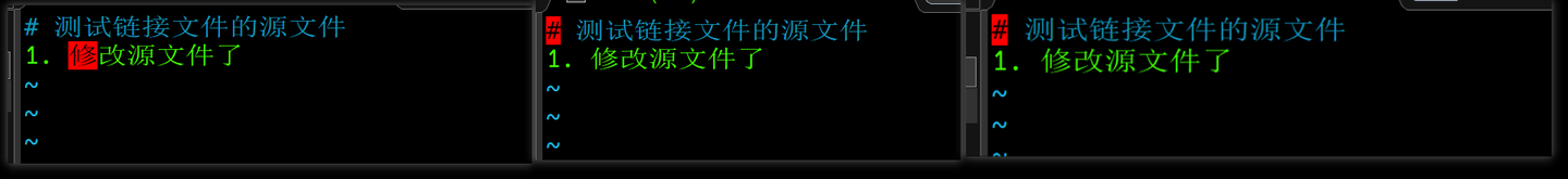 修改源文件的内容,再次打开三个文件,进行比较。