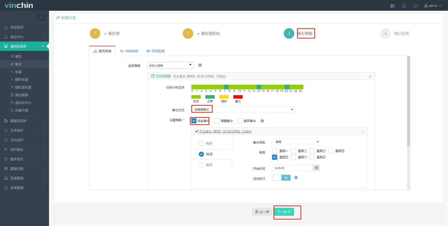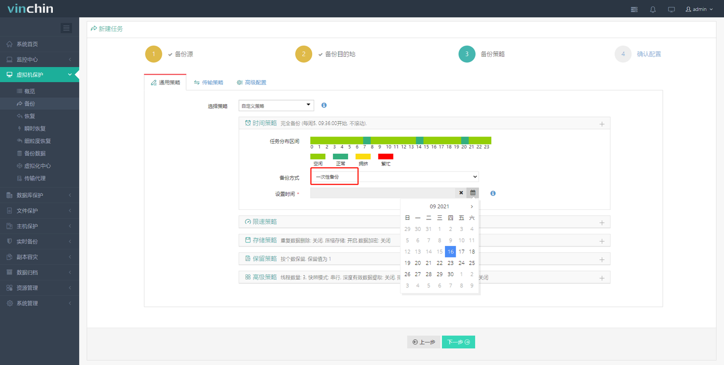 4、设置备份策略,备份方式有【按策略备份】和【一次性备份】