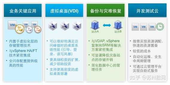 vSAN自诞生之日起,已经被广大用户应用在了各种各样的场景之中,这是因为vSAN的应用范围非常广泛,它可以随时用于所有vSphere工作负载,包括关键业务应用、桌面虚拟化、备份与容灾、测试和开发、DMZ/隔离区、管理集群、第2或第3层应用、远程或分支办公室(ROBO)等,如下图所示。