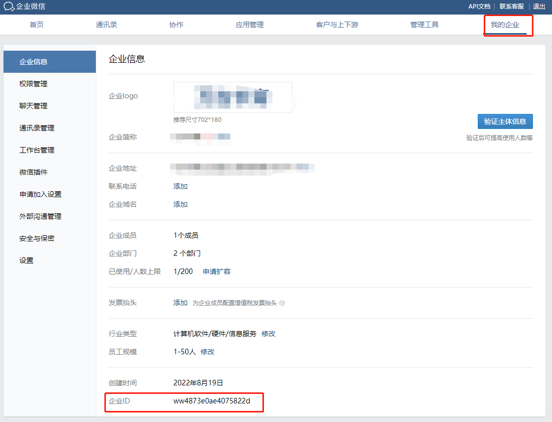 获取企业 ID,并记录。
