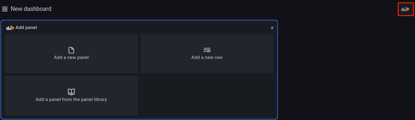 如上图所示,点击 Dashboards --> New dashboard 创建一个 Dashboard,进入如下界面: