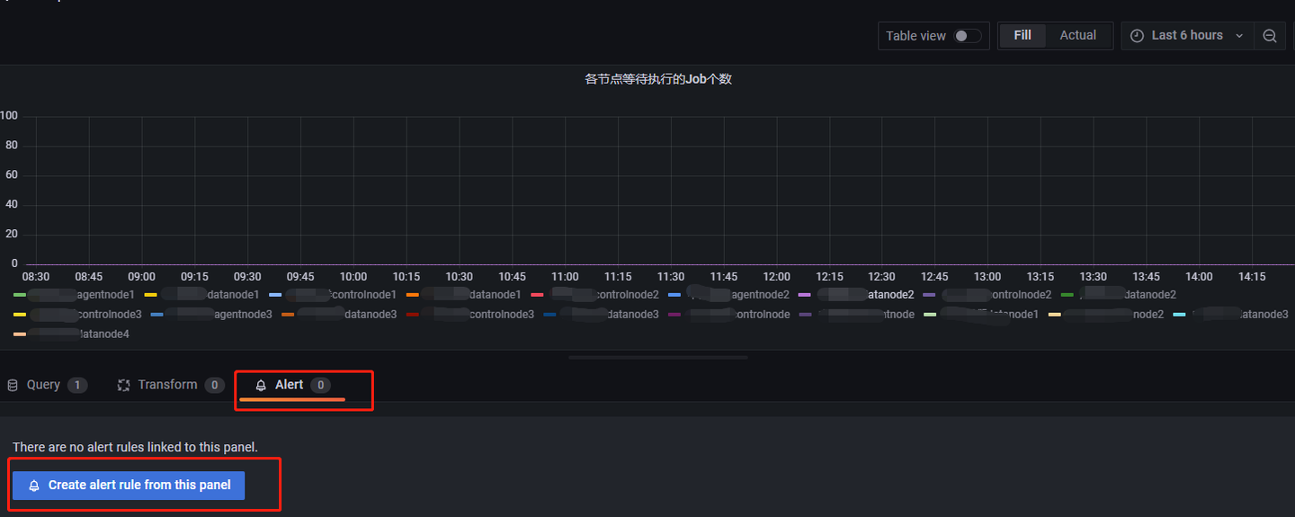 在各节点等待执行 Job 个数这个 panel 里添加一个告警规则后,Dashboard UID 和 Panel ID 会自动补全: