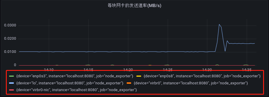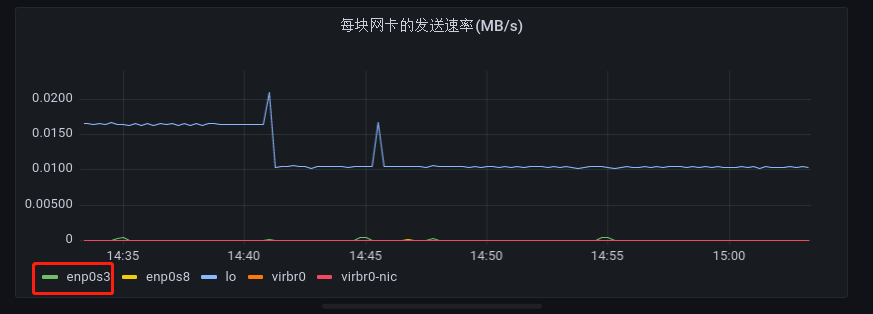 有的时候,不同网卡的发送速率有很大的差别,而 Grafana 在对查询到的结果进行可视化作图时,它是以最大值作为指标波动的上限范围的,导致在可视化时会出现,发送速率较小的网卡看起来几乎没有波动。