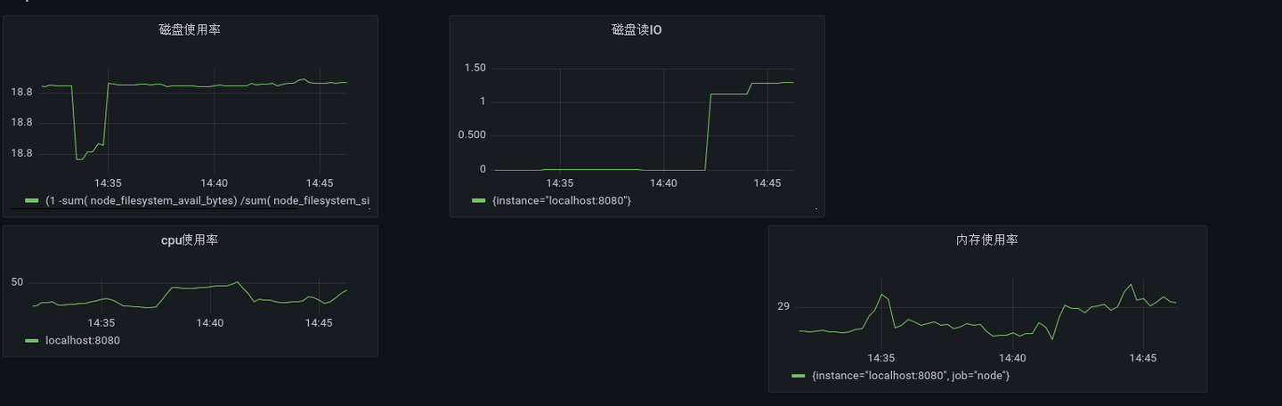 指标类别具体指标Grafana数据源Prometheus数据源CPUCPU使用率PrometheusNodeExporter磁盘磁盘容量、磁盘空间使用率、磁盘 IOPrometheusNodeExporter网络网络IOPrometheusNodeExporter内存内存使用率PrometheusNodeExporter第二套监控方案指标体系如下表所示: