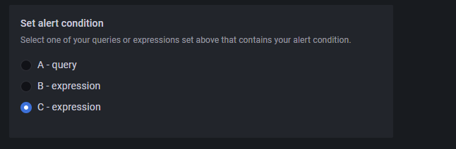 上图选择了 C 返回的结果作为告警触发条件。