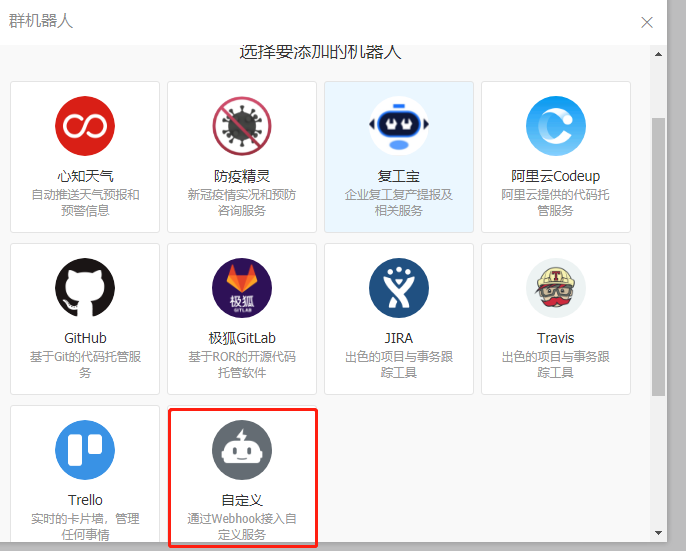 点击添加机器人,出现如下所示页面: