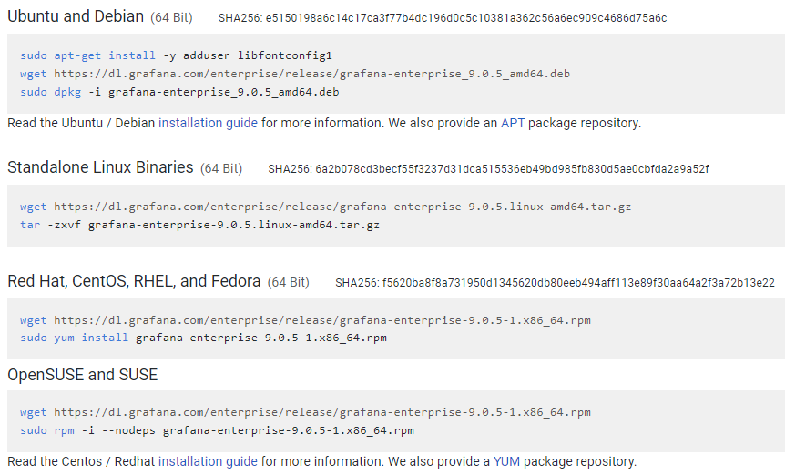 Prometheus 提供了快速验证 PromQL 以及临时可视化支持的功能,但其可视化功能较弱。Grafana 提供了强大的可视化功能,只需配置好 Prometheus 数据源,便能实现对 Prometheus 的可视化。从官网上下载对应版本的软件包(本教程使用的版本为9.0.5):