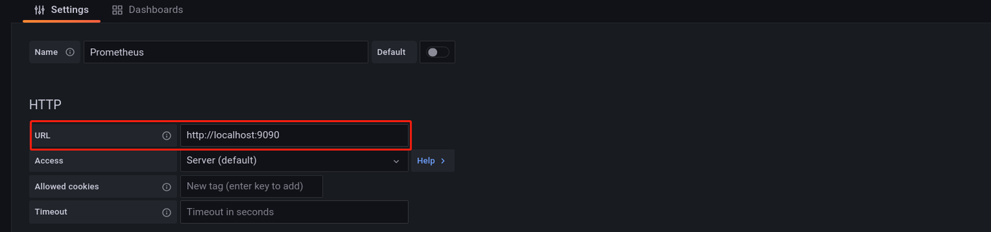 选择 Prometheus 数据源,进入以下配置数据源页面