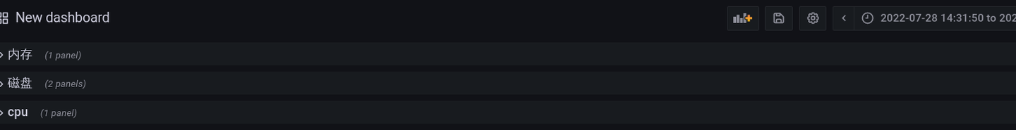 如上图所示,点击右上角的符号,就可以继续追加图表。如果一个 Dashboard 中的 panel 很多,可以进行分类管理。