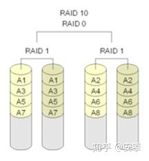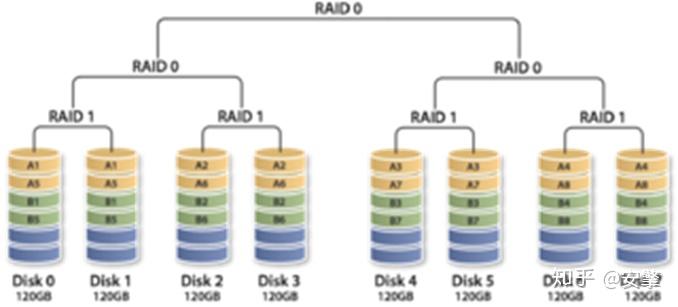需要两个或多个镜像集协同工作。多个RAID 1集可组合形成单个阵列。数据跨所有镜像的驱动器进行分拆。 由于每个驱动器都会在RAID 10中创建镜像,因此不会遇到因未完成奇偶校验计算而导致的延迟。