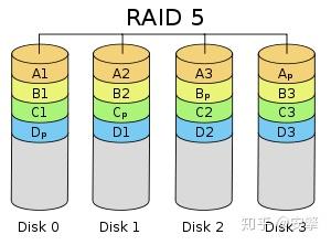 分布奇偶位条带是目前最常见的 RAID 等级,兼顾存储性能、数据安全和存储成本等各方面因素,它可以理解为 RAID0 和 RAID1 的折中方案,是综合性能最佳的数据保护解决方案。可以满足大部分的存储应用需求,数据中心大多采用它作为应用数据的保护方案。RAID 5不单独指定的奇偶盘,而是在所有磁盘上交叉地存取数据及奇偶校验信息。在RAID 5上,读/写指针可同时对阵列设备进行操作,提供了更高的数据流量。RAID 5更适合于小数据块和随机读写的数据。在RAID 5中有“写损失”,即每一次写操作将产生四个实际的读/写操作,其中两次读旧的数据及奇偶信息,两次写新的数据及奇偶信息。至少需要3个驱动器组建。