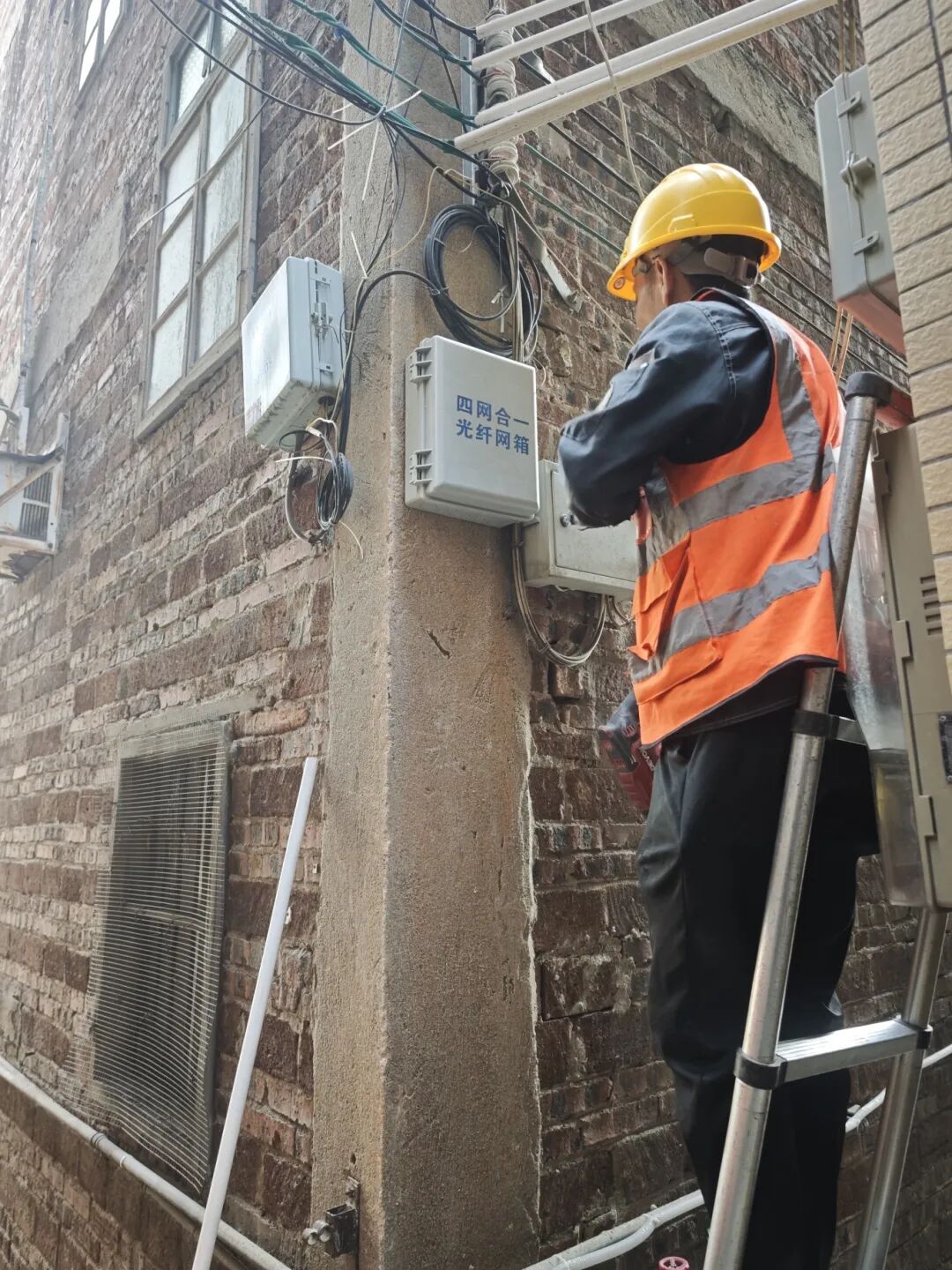 在推进节奏上,里水镇采取“试点先行、分批推进”的科学策略。作为先行试点,洲村社区紧邻广州,此前岗美经济社三线乱拉乱接现象突出,成为人居环境提升的“拦路虎”。2024年1月,该社区试点整治全面铺开,施工团队完成全新“四网合一”光网络铺设、楼栋分纤箱安装、用户线路割接及旧线缆清拆等全流程工作,当年5月便实现试点区域整治收官。如今走进岗美经济社,昔日交错缠绕的线缆消失不见,整齐排列的新光纤线路规范有序,社区还借机升级了视频监控系统,提升了社会管理水平。